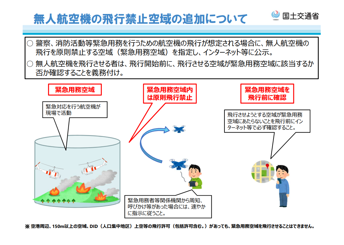 また、無人航空機を飛行させる者は、飛行開始前に、飛行させる空域が緊急用務空域に該当するか