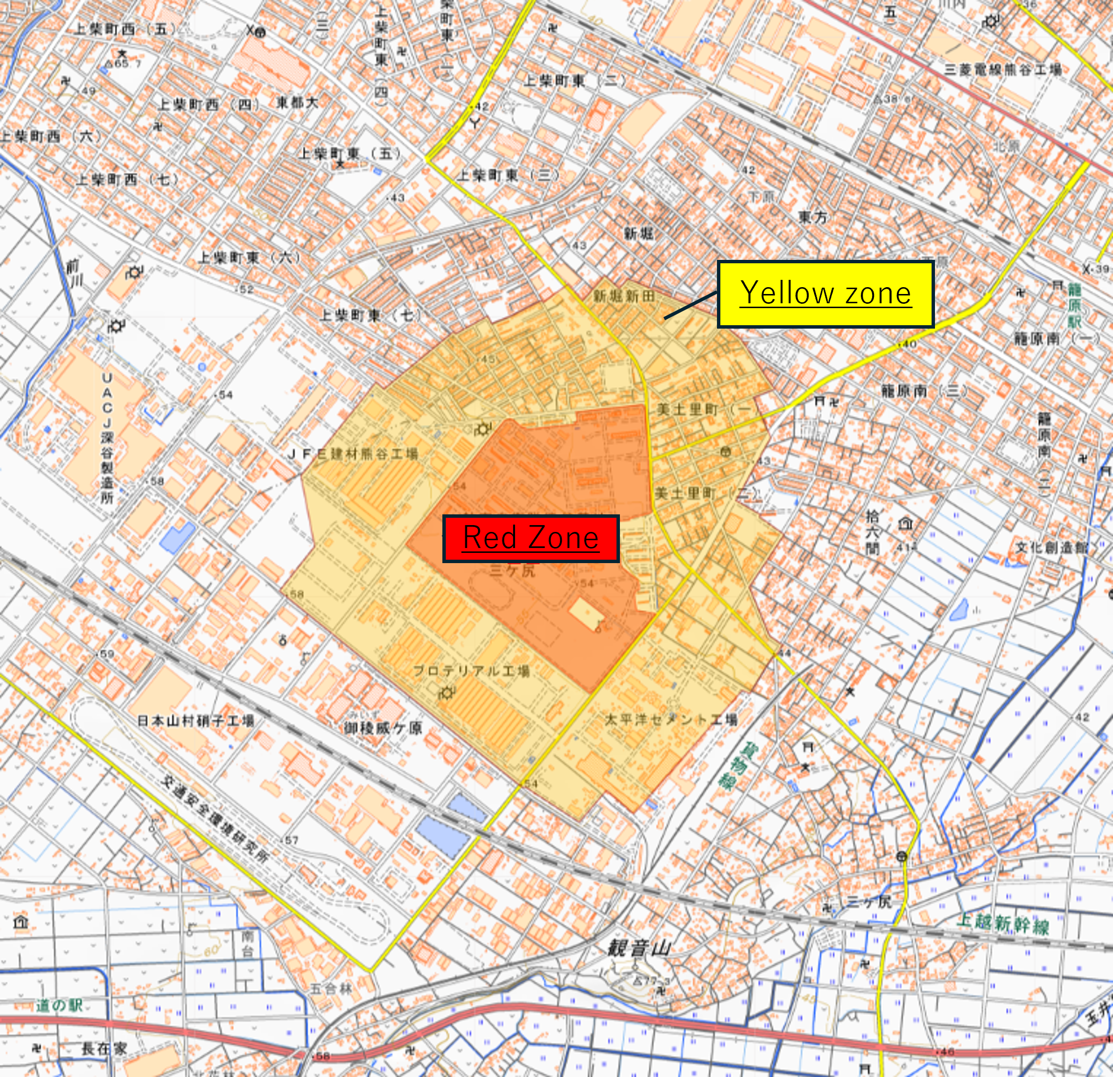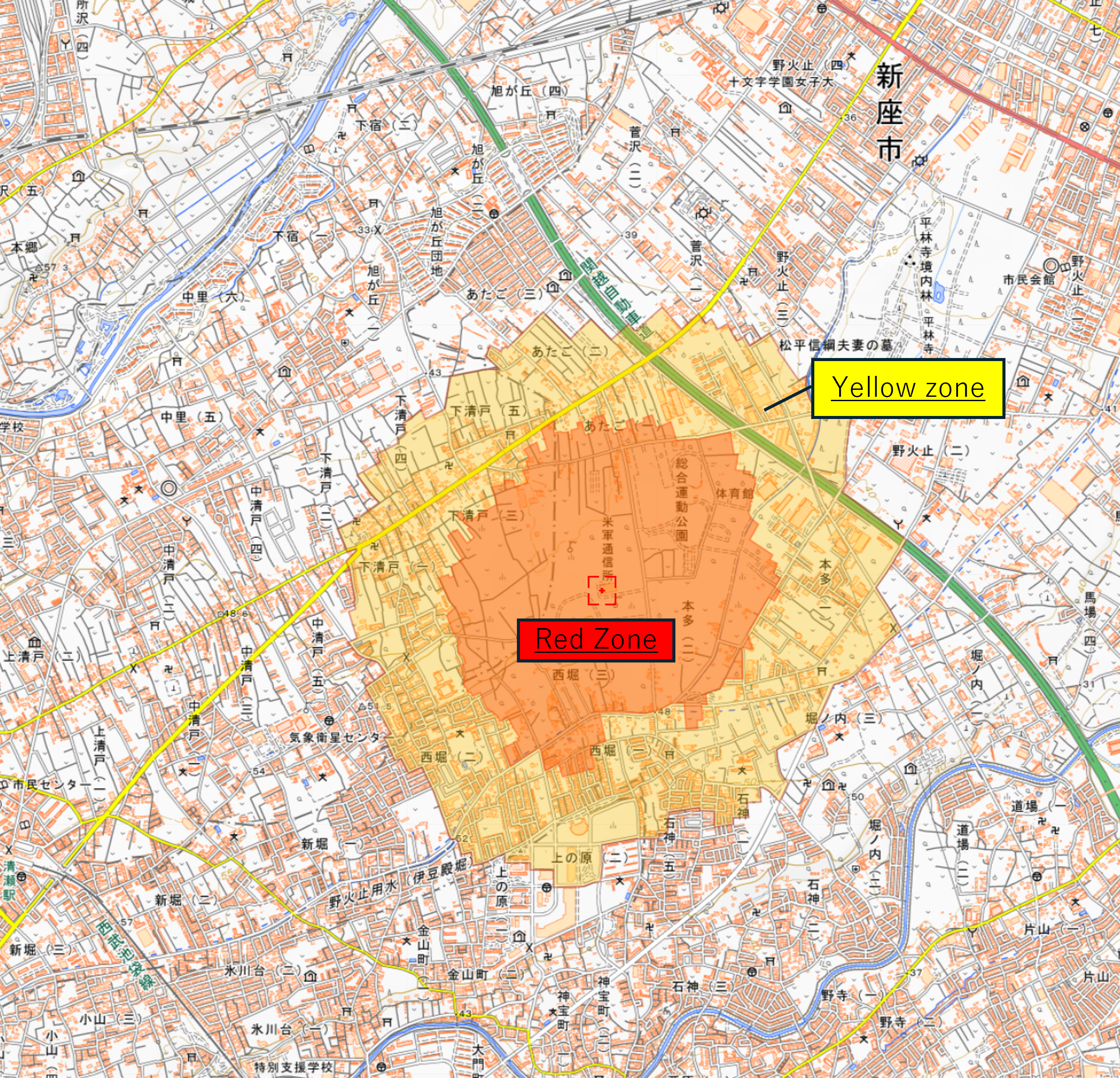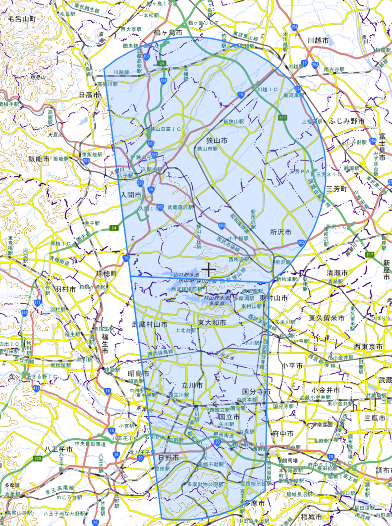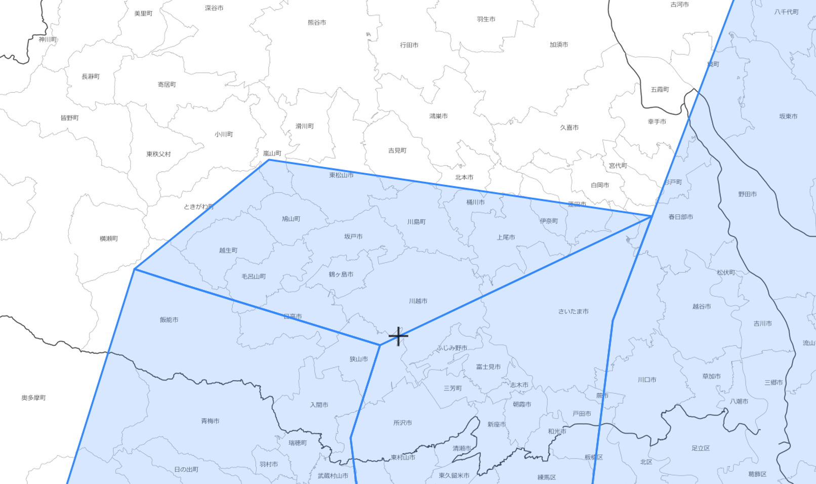 埼玉県では下図のエリアが進入管制区となっています。150m以上のドローン飛行をさせる場合は東京空港事務所との調整が必要です。